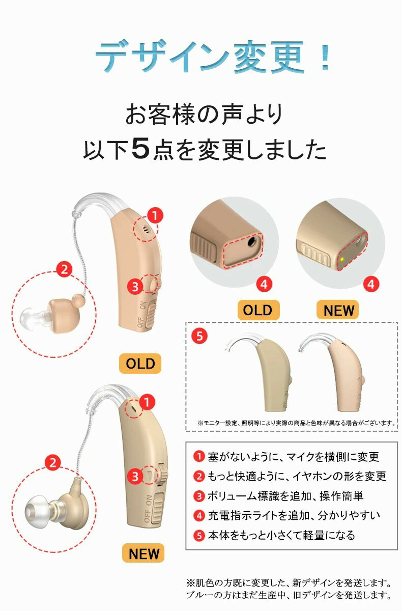 ※本製品は音を集めて大きくする一般家電の集音器であり、聴覚障碍者の方向けの補聴器ではありません。 補聴器は「聴力に合わせて足りない音を大きくするもの」です。集音器は「すべての音を大きくするもの」です。 ※本製品医療用品ではありません ※使用者の聞こえの度合いによって効果が表れにくい場合もございます。あらかじめご了承ください。 ※必要以上の過大音による聴取はさけて下さい。過大音の長時間聴取は聴力低下を招く場合があります。 ※万が一製品に異常を感じた場合は、ただちに使用を中止して下さい。 ※本製品を使用時に生じた、いかなる損害についても弊社は一切の責任を負いません。必ずお客様の責任においてご使用いただけますようお願い致します。 ※本体がしっかり耳に装着できていなかったり、マイク部分を指でふさぐなどしてしまった場合、ハウリングが発生する可能性がございます。