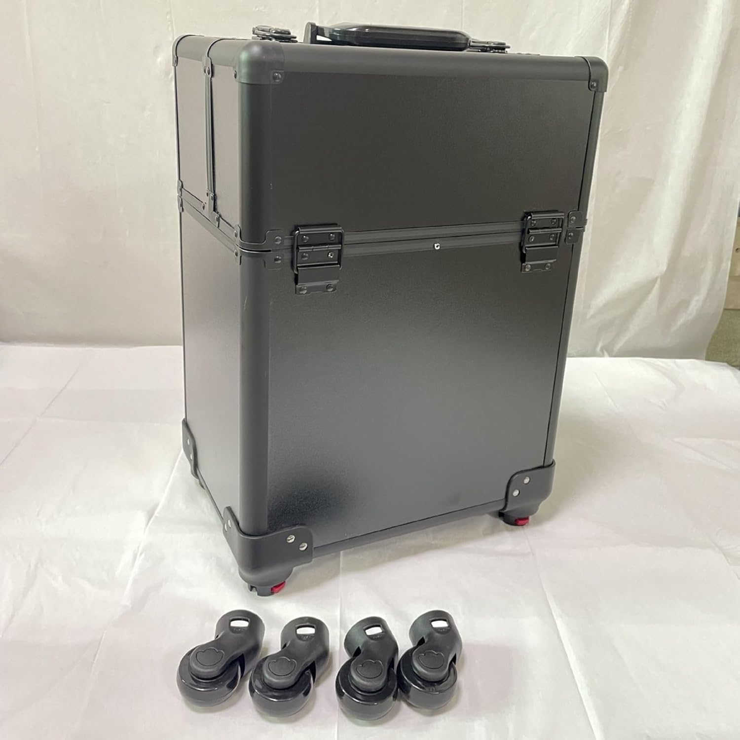 -------商品詳細------- 【お手入れ簡単】コスメ メイク ボックスはABS表面仕上げなので、化粧品をこぼしても簡単に拭き取ることができ、きれいで新しい状態に保ちながら、長期間の使用が可能です 【取り外し可キャスター・使いやすい】黒いバニティケースのキャスターは取り外し可能なユニバーサルホイールで設計され、制御可能なブレーキ付き、駐車しやすく、便利で省力化され、旅行時に押したり引いたりして使用でき、屋外ライブ放送、キャスター、メイクアップアーティスト、ネイリスト、修理工に適しています 【大容量】コスメボックスとキャリアーケース兼用。メイクボックスはトレー式、トレーを広げて必要な物が一目瞭然です。キャリーケースには引き出し8杯付き、引き出しを取り出して大きな収納スペースに変身します。 【プロ仕様のコスメケース】大容量で仕事に必要なメイク道具や化粧用品をすべて整理して収納できます。メイクアップアーティストやネイリスト、出張サロンなど、たくさんの荷物で移動される方にオススメです。彼女、奥様、お子様のプレゼントなどにも最適な商品です! 【耐衝撃】衝突によるボックスの損傷を防止するために、耐衝撃性の素材を採用され、四角の丸みがしっかり補強され、かすり傷にならないように細部まで丁寧なこだわります。説明 ■商品紹介■ 持ち運び簡単のサイズ、キャリーバッグで使い勝手抜群! 撥水加工済み(完全防水ではございません)組み立て状態でのお届けになります。 プレゼントにも最適。お年寄りにも安心。 【大容量】 化粧水/乳液/下地/ファンデ/ルースパウダー/チーク/アイシャドウ類の他筆数本 ブラシ/口紅/リップグロス/ネイル用品/ネックレス/指輪/イヤリング等、 ジュエリー、コスプレ衣装、普段使いの化粧品などコスメをスッキリ収納できます。 フリーランスのメイクアップアーティストがさまざまな場面で使用できる携帯性を提供します。 【美容師/化粧箱】 様々な形のコスメグッズを収納できる多彩な収納部をご用意しておりますので、小さな物から大きな物まですっきり収まります。 美容師だけではなく、ダンサー、俳優、音楽関係の方々やコスプレイヤーのイベントにも大変使い便利です。 【丈夫な生地】 丈夫な素材を採用していて、汚れにくく、耐水性・耐久性に優れ、長期に渡って愛用して頂けます。 傷や磨耗、引き裂きに対するばつぐん耐久性を実現。頻繁かつ長時間の使用を保証しながら、15-18kgまでの耐荷重を可能にする。 ほぼ完成品の状態で、使い始めも簡単です。 お手持ちのメイク道具や、メイクに必要なアイテムを全て収納することができます。 【簡単な動き】 360°回転のキャスターでスムーズに動かせます。スムーズ移動できる車輪を備え、伸縮ハンドルとトップハンドルで簡単に持ち運びができ、あちこちに便利に移動できます。 外出先でメイクアップアーティスト、美容師や美容師がドア-ツー-ドア-サービス、毎日の仕事、出張などのトラベルケースとして使用するのに最適です。 【注意事項】 ・実際の商品の色になるべく近いかたちで掲載しておりますが、モニターの違いなどで実際の商品と色味が異なる場合がございます。 ・ハンドルは必ず伸ばした状態で使用して下さい。収納状態で使用すると破損する恐れがあります。 ・ネジナットは緩みにくい仕様のものを採用しておりますが、必ず緩まないというわけではございません。 ・輸送中、商品の表面にわずかな摩耗の跡が現れるのは避けられない状況です。納得できない場合は、購入しないでください。