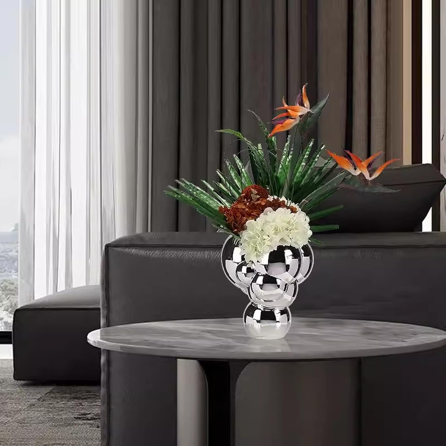 造花 フェイクグリーン 極楽鳥花 フラワーアレンジ 天堂鳥 インテリア メッキ花瓶付き 玄関 繊細な葉 テーブル装飾花 ディスプレイ テレビ台 オフィス 事務所 撮影道具 お開店祝い 新生活 世話不要
