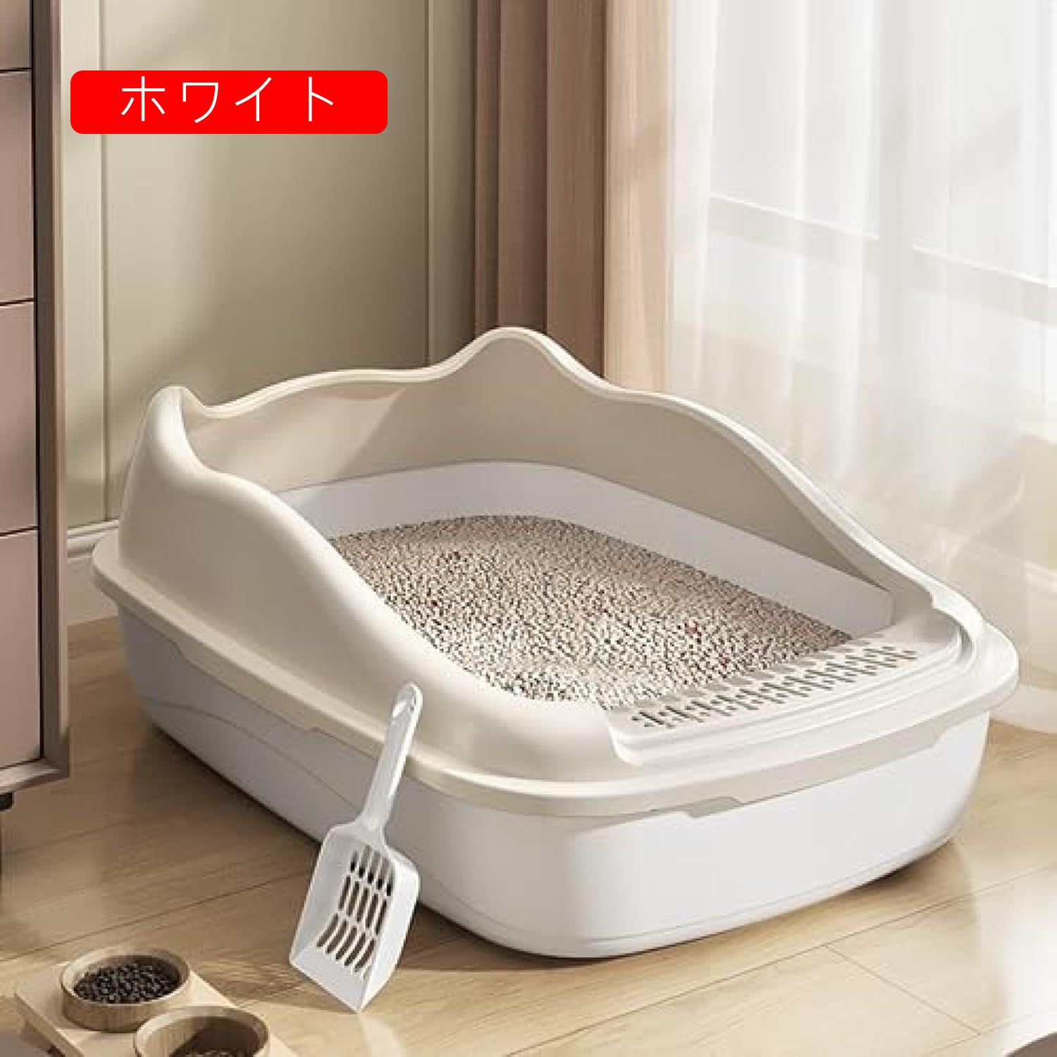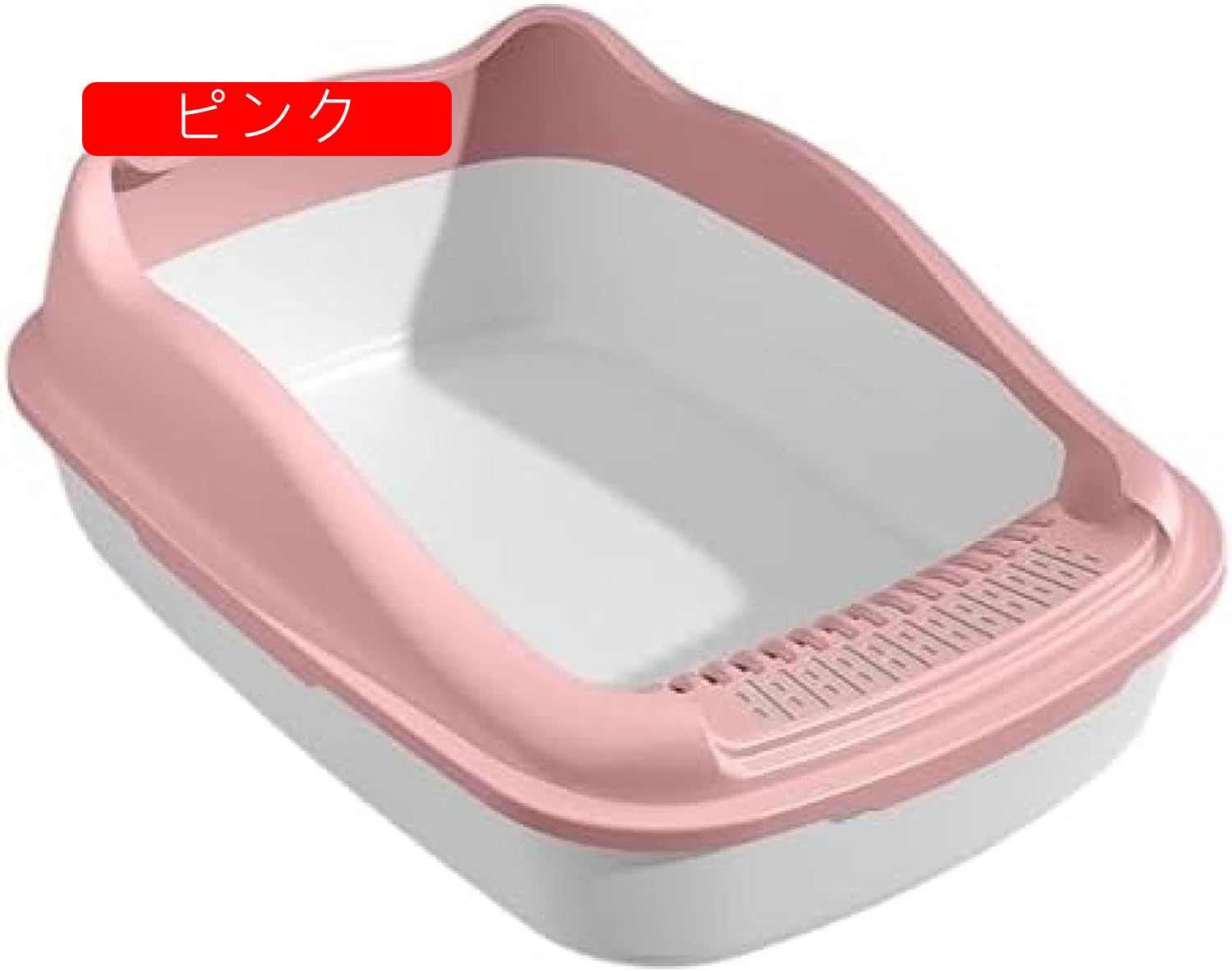 半密閉式 猫 トイレ 大きめ オープンタイプ ワイドサイズ スコップ付き 猫用トイレ本体 砂の飛び散り防止 漏れ砂穴設計 取り外し可能 掃除簡単 軽量 耐久性 ネコトイレ 猫用品 ピンク 子猫用 可愛
