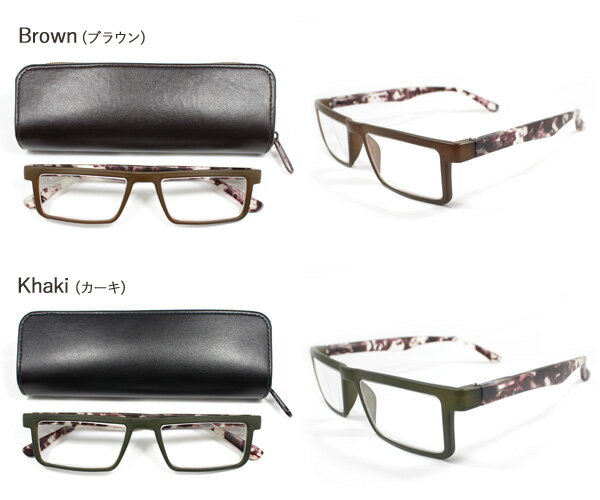 【※】大変申し訳ございませんが、当店ではお客様ご都合による商品交換・返品はお受けしておりません。 アースカラーのフロントとカモフラージュ柄のテンプルがお洒落なデザイン。全体的にスリムなスクエアタイプのフレームです。メガネと同系色で合わせた専用ケースもしっかりとメガネを保護し、持ち運びにも最適です。※生産の都合上、プリント面が若干異なる場合がございます。予めご了承くださいませ。 素材&サイズ [素材]メガネ/プラスチック、ケース/合皮[サイズ]レンズ/横幅約50mm×縦幅約26mmフレーム/横幅約135mm、ツルの長さ/約135mmケース/横幅約154mm×縦幅約50mm×厚み約25mm[重さ]メガネ約22g、ケース約35gアースカラーのフロントとカモフラージュ柄のテンプルがお洒落なデザイン。全体的にスリムなスクエアタイプのフレームです。メガネと同系色で合わせた専用ケースもしっかりとメガネを保護し、持ち運びにも最適です。※生産の都合上、プリント面が若干異なる場合がございます。 老眼鏡 おしゃれ メンズ