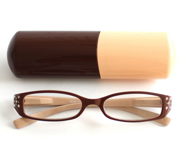 ブラウンカラーと内側の肌色に程近いライトベージュとのコンビネーションが顔なじみよく合わせやすいデザインです。スタイリッシュなスクエアフレームにサイドのラインストーンがさりげなく華やかに印象に。 オリジナルケースはプラスチック製。フレームと同じバイカラーデザインがお洒落な小物感覚で、持ち運びにも便利です。【※】生産の都合上、掲載画像と実際のプリントが異なる場合がございます。予めご了承くださいませ。素材&サイズ[素材]メガネ/プラスチック、ケース/プラスチック[サイズ]レンズ/横幅約50mm×縦幅約23mmフレーム/横幅約140mm、ツルの長さ/約145mmケース/横幅約155mm×縦幅約45mm[重さ]フレーム約20g、ケース約50g※バネ入りテンプル(つる)です。ブラウンカラーと内側の肌色に程近いライトベージュとのコンビネーションが顔なじみよく合わせやすいデザインです。スタイリッシュなスクエアフレームにサイドのラインストーンがさりげなく華やかに印象に。 オリジナルケースはプラスチック製。フレームと同じバイカラーデザインがお洒落な小物感覚で、持ち運びにも便利です。