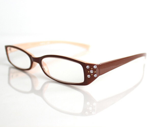 【SALE】Bayline リーディンググラス (老眼鏡) ラインストーン バイカラーデザイン[ブラウン×ライトベージュ]プラスチックケース おしゃれ スタイリッシュ レディース 老眼鏡