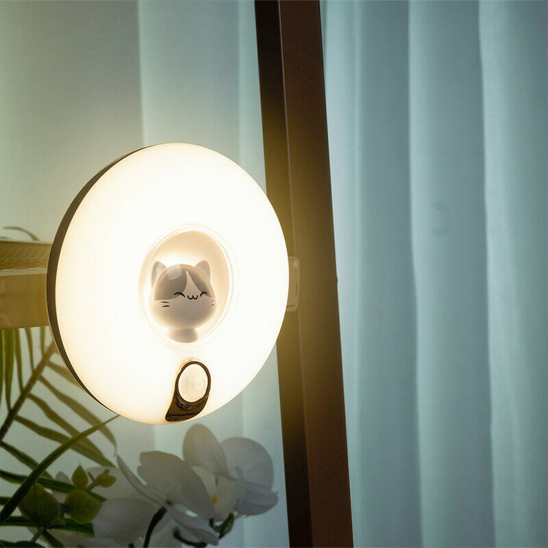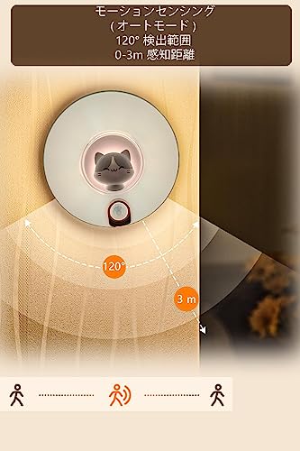センサーライト 室内 電池式 充電式 磁気コードレスLEDライト、常夜灯、 明るさ調整可能かわいい猫ランプ、ベッドルーム、廊下、階段、クローゼット、壁、子供部屋などに最適