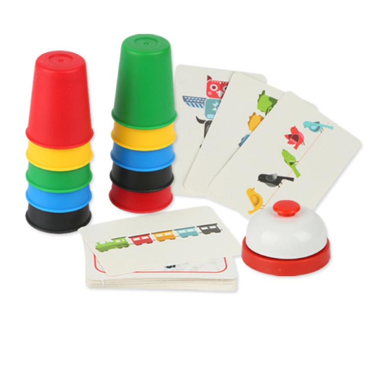 スピードカップスおもちゃは子供の成長期に一番オススメです。【イベントの定番】ベルを叩き、スピードカップというのは、カードの5色のアイテムによって、順番にカップを積み重ねたり、並べたり、面白くて簡単なゲームです。カップは青、赤、緑、黄、黒その5種類の色があります。カラフルな色で子供の遊び興味を刺激し、男の子も女の子も大喜びです。クリスマスや誕生日などのイベントでも大活躍です。【スピードカップスの遊び方】プレイヤーはそれぞれ、手持ちの5色のカップを使って、カードによって、正しい順序によく並べ、カードに示された課題を解きます。素早く正確な操作で、一番多くのカードを集めたプレイヤーが勝者です。【面白いカップゲーム】スピードカップスカードには5色のアイテムを描きます。カードの絵は横一列に並んでいる場合と、上下に分かれている場合があります。それぞれの場合によって、カップを並べるか積み重ねるかを判断しなければなりません。子供は見たものをちゃんと考えて、思考能力を発達させます。【子供と一緒に遊びながら家族との貴重な思い出が作ってきました。親子関係が改善られるばがりでなく、成長を見守ることにとって非常に大切なコミュニケーションそのものも促進できます。 サイズ F サイズについての説明 サイズ:31*27*6cm 積み重ねカップ:24個 カード:24枚 ベル:1個 6歳以上※サイズ計測には誤差が生じます。 素材 プラスチック 色 写真色 備考 ●サイズ詳細等の測り方はスタッフ間で統一、徹底はしておりますが、実寸は商品によって若干の誤差(1cm~3cm )がある場合がございますので、予めご了承ください。 ●製造ロットにより、細部形状の違いや、同色でも色味に多少の誤差が生じます。 ●パッケージは改良のため予告なく仕様を変更する場合があります。 ▼商品の色は、撮影時の光や、お客様のモニターの色具合などにより、実際の商品と異なる場合がございます。あらかじめ、ご了承ください。 ▼生地の特性上、やや匂いが強く感じられるものもございます。数日のご使用や陰干しなどで気になる匂いはほとんど感じられなくなります。 ▼同じ商品でも生産時期により形やサイズ、カラーに多少の誤差が生じる場合もございます。 ▼他店舗でも在庫を共有して販売をしている為、受注後欠品となる場合もございます。予め、ご了承お願い申し上げます。 ▼出荷前に全て検品を行っておりますが、万が一商品に不具合があった場合は、お問い合わせフォームまたはメールよりご連絡頂けます様お願い申し上げます。速やかに対応致しますのでご安心ください。