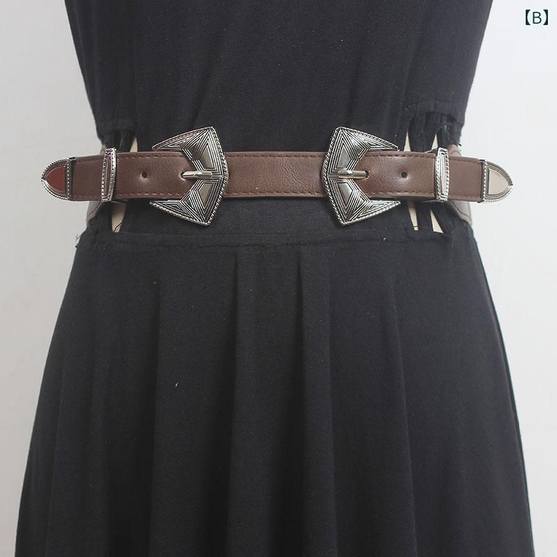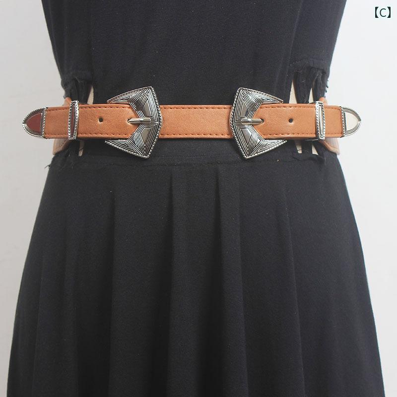 ベルト おしゃれ レトロ レディース 装飾 レザー スカート ブラック ブラウン アメリカン ウエストゴム 個性