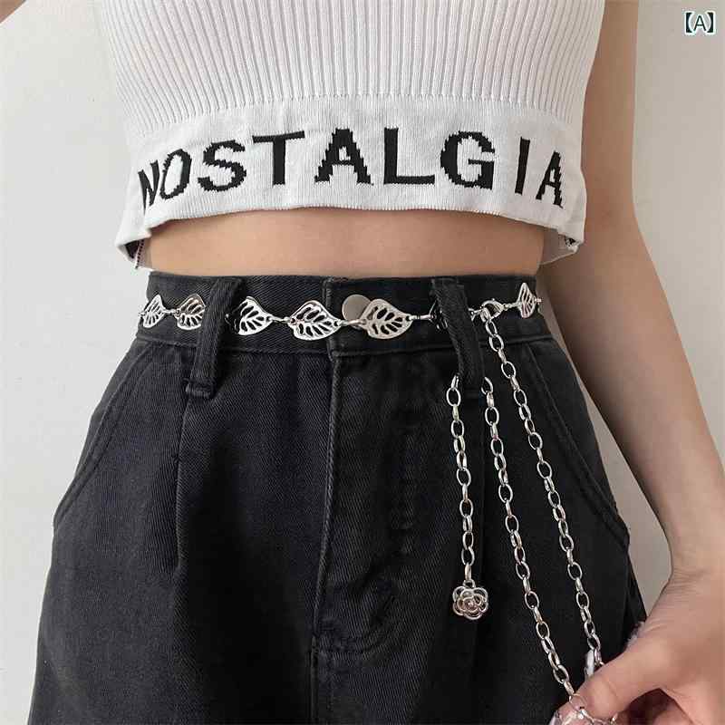 ドレス レディース 夏 ウエスト チェーン ベルト リーフ 女性 スーツ シルバーメタル チェーン ベルト イン