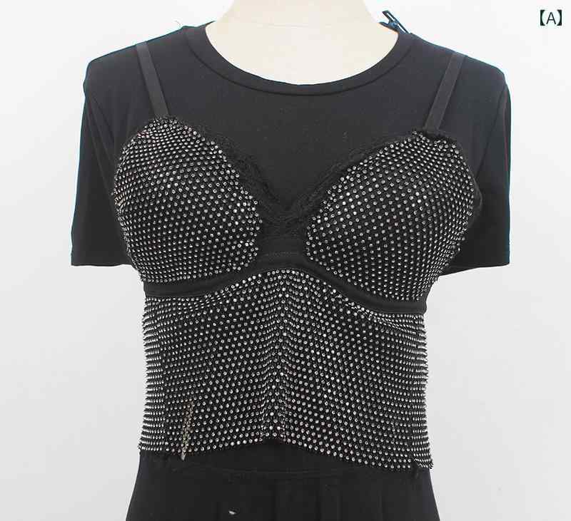レディース 韓国 レース 魅惑 ラップ 胸 インナー レイヤード シャツ 輝く サスペンダー トップ 装飾品 ファッション