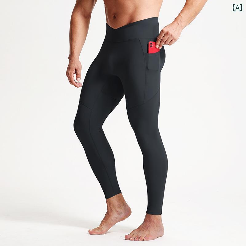 パンツ メンズ クロス オーバー ハイウエスト ヨガ ストレッチ 速乾 スポーツ レギンス ランニング バスケットボール トレーニング タイト フィットネス