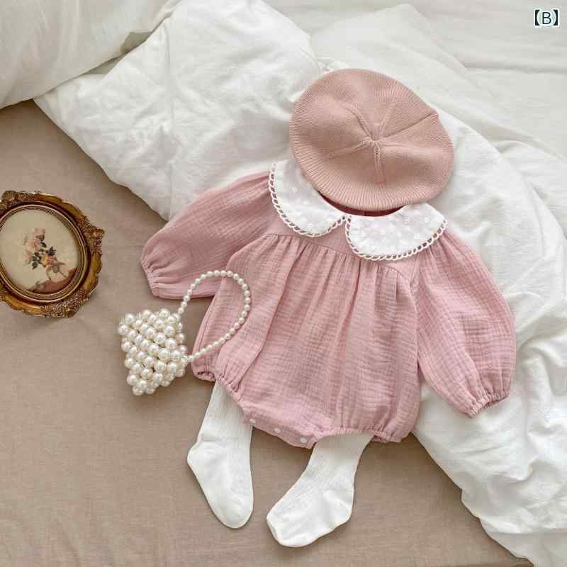ロンパース ベビー服 ジャンプ スーツ 新生児 春 スタイル 女児 赤ちゃん スタイル 無地 長袖 カバー 三角 クロール スーツ