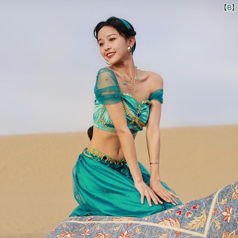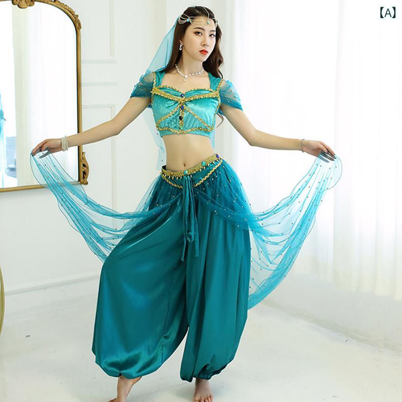 ベリーダンス 衣装 エキゾチック インド ダンス ステージ パフォーマンス コスチューム プリンセス ジャスミン ポーズ ワンショルダー レディース エスニック 魅惑 セクシー