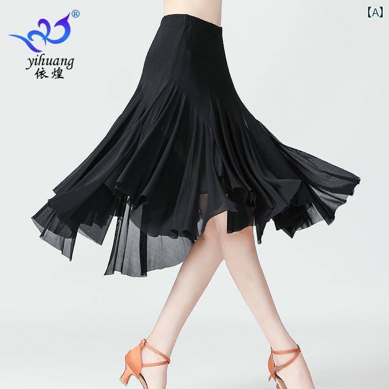 大振りスカート メッシュ ダンススカート スクエアダンス 社交ダンス 練習スカート パフォーマンス スーツ ミモレ丈 スカート ダンススカート