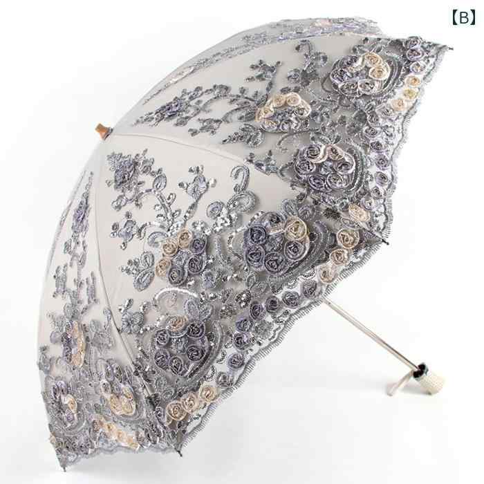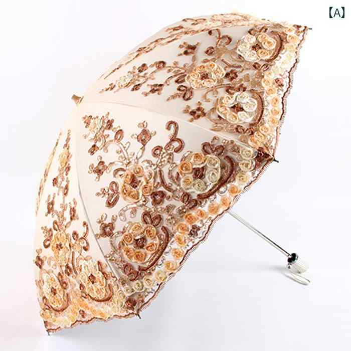豪華 刺繍 日傘 日焼け防止 紫外線防止 折りたたみ傘 二つ折り 大人 スチール レディース レディース