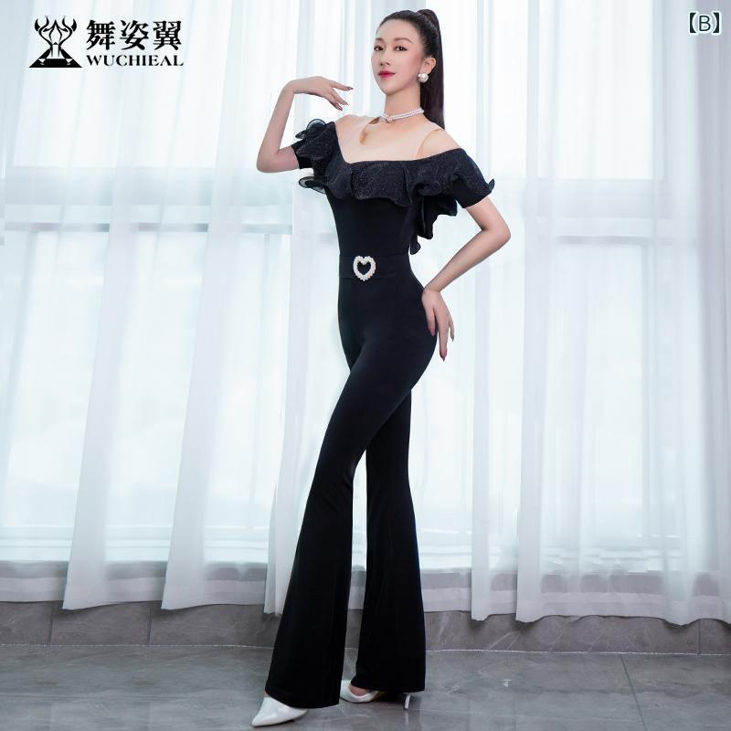 レディース ダンス 衣装 スリムボディ 舞台服 夏 トレーニング 練習 ステージ 服 フレアパンツ スーツ
