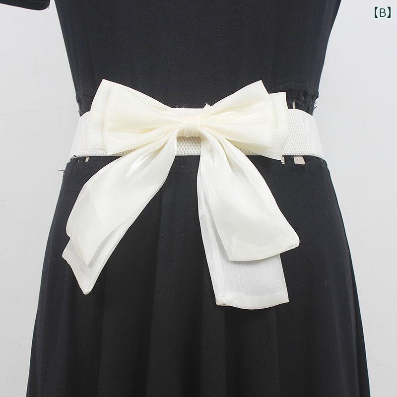 レディース レディース 黒 ベルト 学生 飾り 穴し 白 ウエストゴム リボン アクセント ファッション 蝶結び