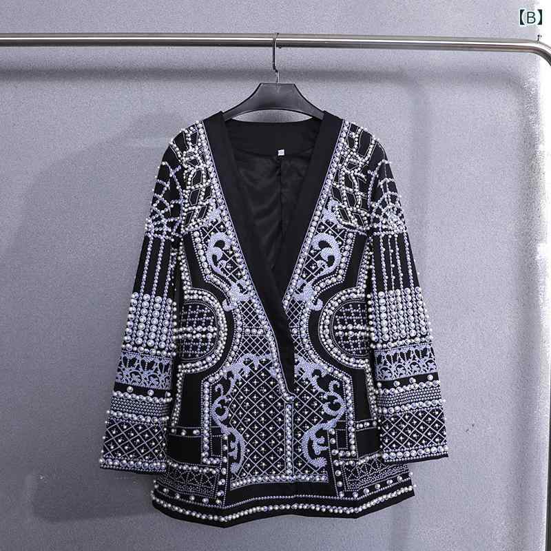 ドレス レディース クロスボーダー アメリカン v ネック パーティー クラブ スーツ プリント ビーズ スリムフィット ビーズ