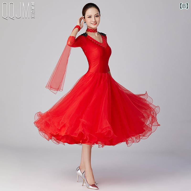 レディース 社交 ダンス 衣装 ワンピース ドレス モダン ビッグ スイング 標準 パフォーマンス 黒 練習 服 トレーニング ウェア