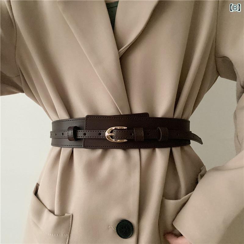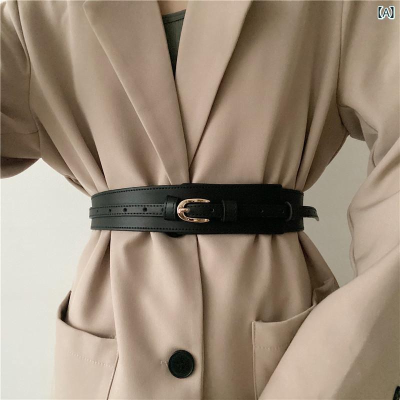 スカート ウール レザー ベルト 女性用 フレンチ ブラック レトロ ベルト 万能 スーツ ウインドブレーカー ガードル レザーベルト