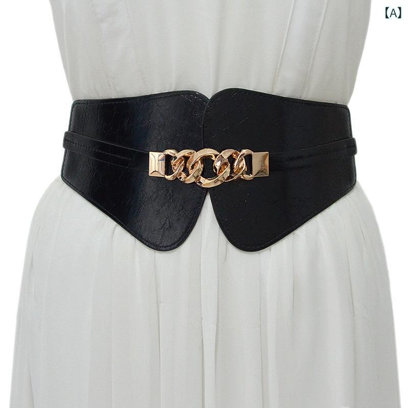 ウエストマークベルト レディース 太幅 ゴムベルト 伸縮性 ストレッチ スパイラル金属バックル フェイクレザー コルセットベルト カジュアル おしゃれ 通勤 ワンピース アウタースタイル 黒 白 茶色(x2)