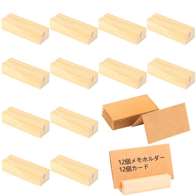 CINECE メモクリップ ホルダー スタンド 木製 12個+12枚名刺 写真 カード 立て 名刺 便箋 文具 事務 シンプル