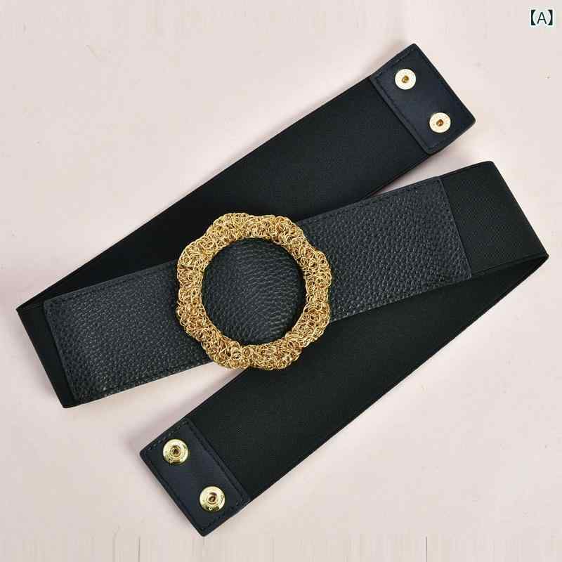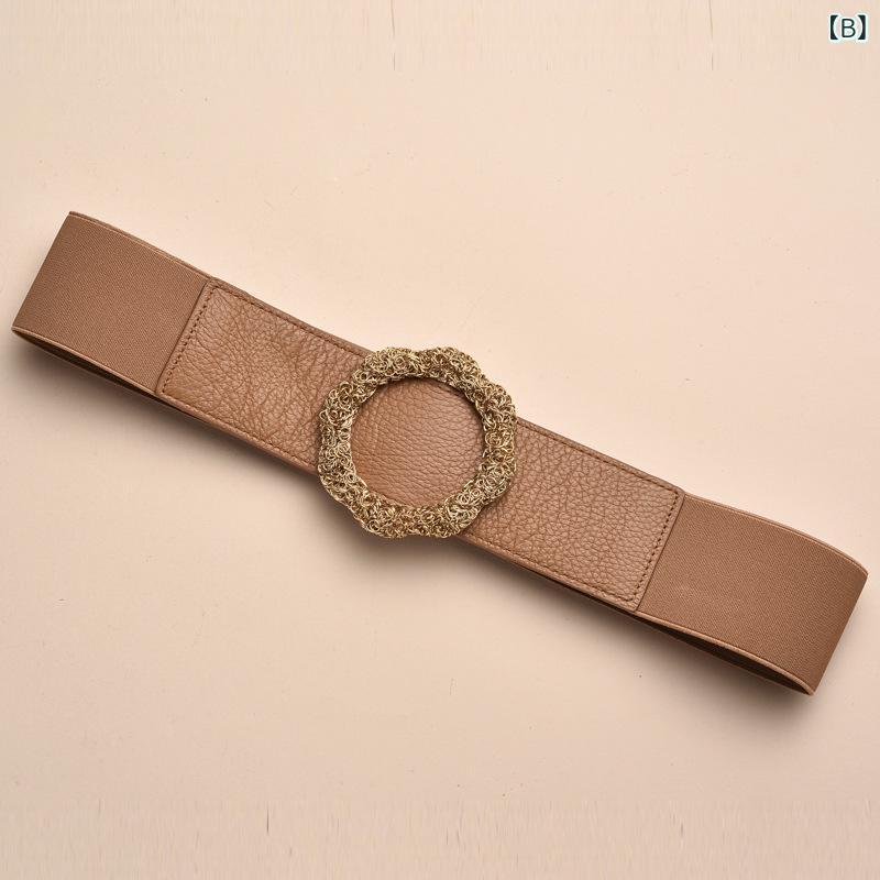 コルセットベルト レディース 牛革 本革 幅広 ゴムベルト 伸縮性 ひまわり装飾 ウエストマーク スタイルアップ 体型カバー エレガント 上品 着回し力抜群 オールシーズン ワンピース スーツ コート ニット セーター ブラック ブラウン(x2)