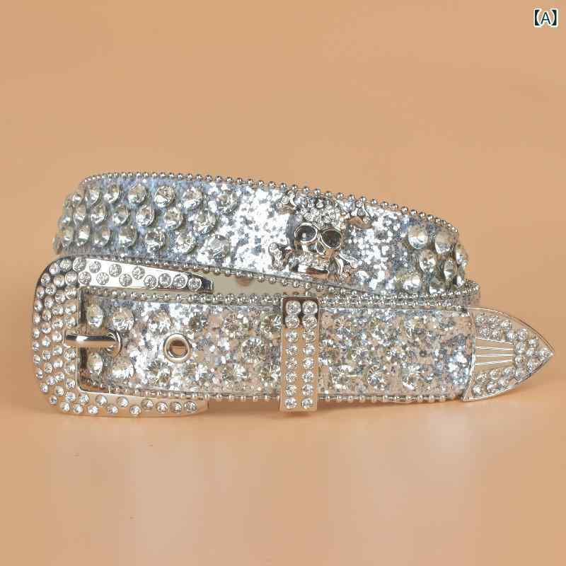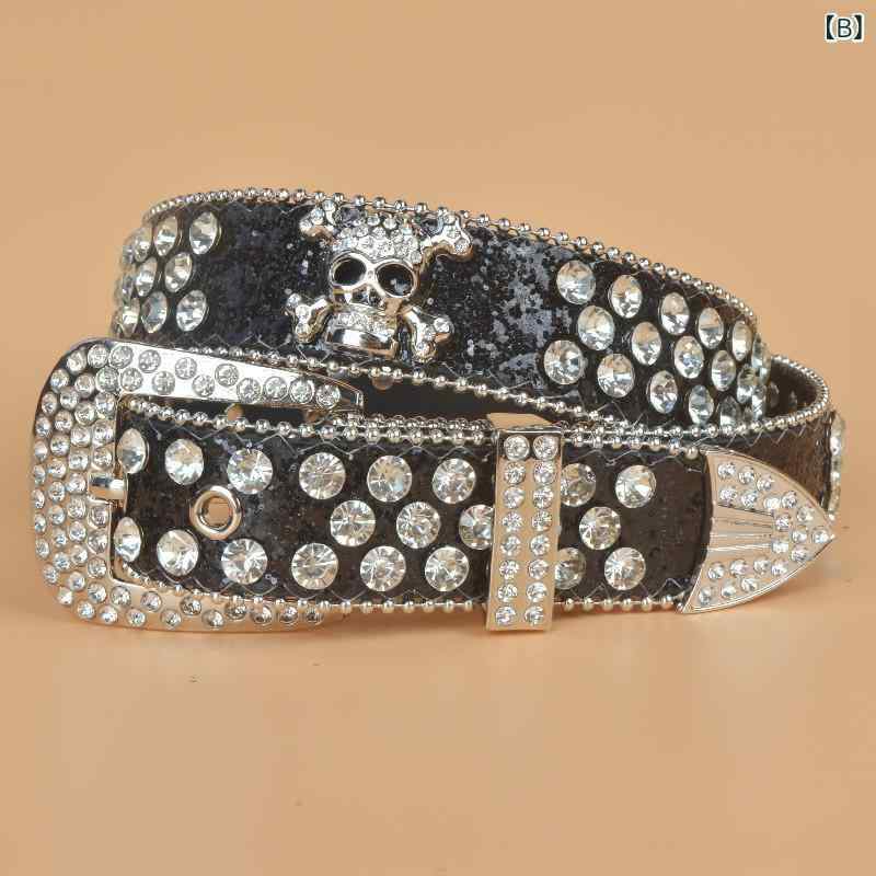 ベルト レディース 女性用 スカル ドクロ ラインストーン ジルコニア 欧米風 アメカジ デニム ジーンズ カジュアル PUレザー ピンバックル 幅広 太め ロングサイズ 長め ウエストマーク スタイルアップ サイズ豊富 おしゃれ かわいい