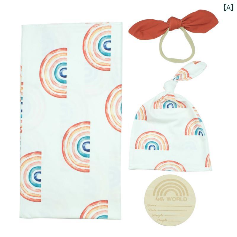 ベビー 新生児用 おくるみ 撮影用 欧米風 ポリエステル素材 オールシーズン かわいい フラワー柄 リボンヘアバンド ブランケット 4点セット