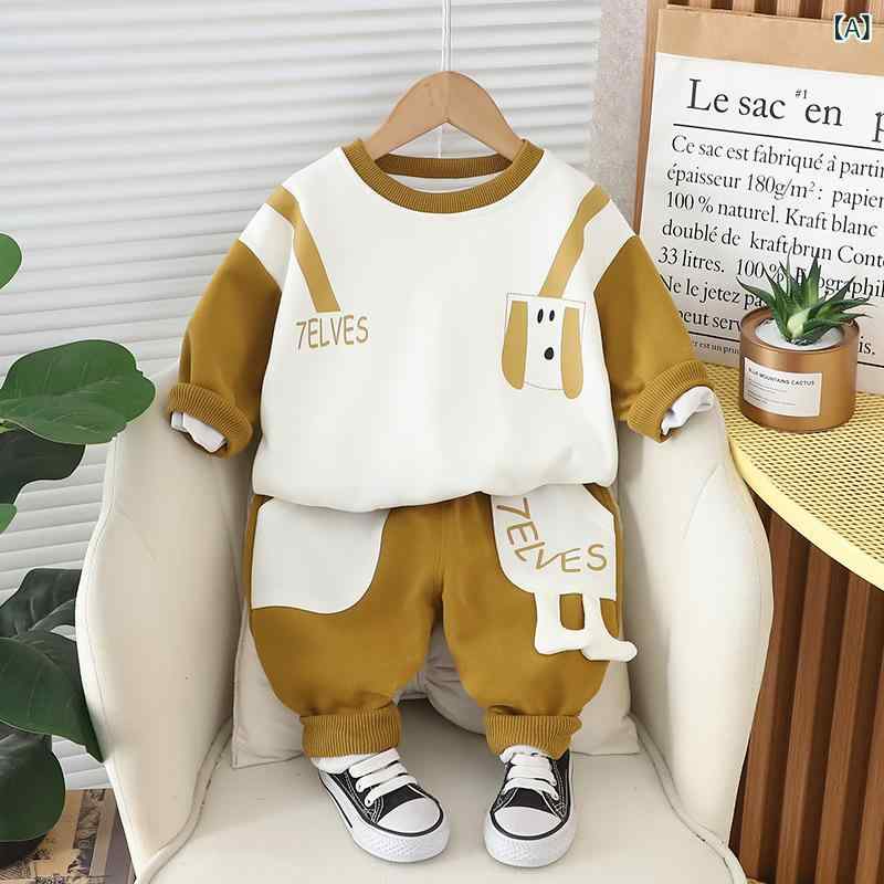 ・カテゴリ: キッズセットアップ・性別: ユニセックス・スタイル: 韓国風・セットアップタイプ: パンツセット・セット内容: 2点セット・対象年齢: 1〜3歳 (身長80〜100cm)・袖丈: 長袖・パンツ丈: ロング・生地加工: 柔らか加工・厚さ: 普通・柄: カートゥーン・特徴: セットアップ、カートゥーン、かわいい、股開き可能・主な素材: 綿95%・安全基準: Aクラス・開閉様式: プルオーバー・カラー展開: レモンイエロー、ブラック、ダークブラウン・サイズ展開: 80cm、90cm、100cm、110cm、120cm
