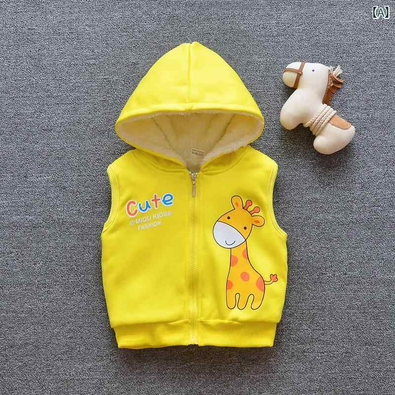 ・カテゴリ: キッズベスト・性別: ユニセックス・スタイル: 韓国風・対象年齢: 1〜3歳・主な素材: 綿95%・生地加工: 柔軟加工・厚さ: フリース・中綿: ポリエステル・裏地: ボア・開閉: ジップアップ・フード: あり・柄: 動物、アニメ、顔、チェック、プリント・カラー展開: イエロー、ローズレッド・対応身長: 80cm、90cm、100cm、110cm