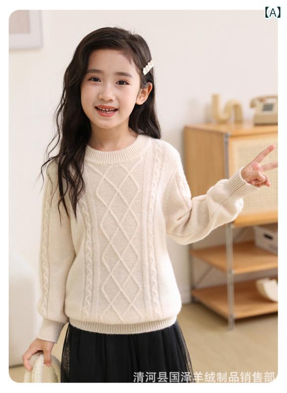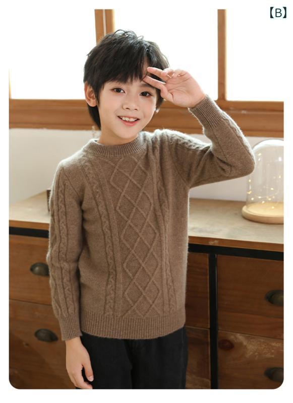 ニット セーター キッズ ジュニア 子供 男の子 女の子 100% ウール 厚手 肉厚 丸首 クルーネック プルオーバー 無地 秋冬 韓国風 カジュアル 柔らかい 肌触り 普段着