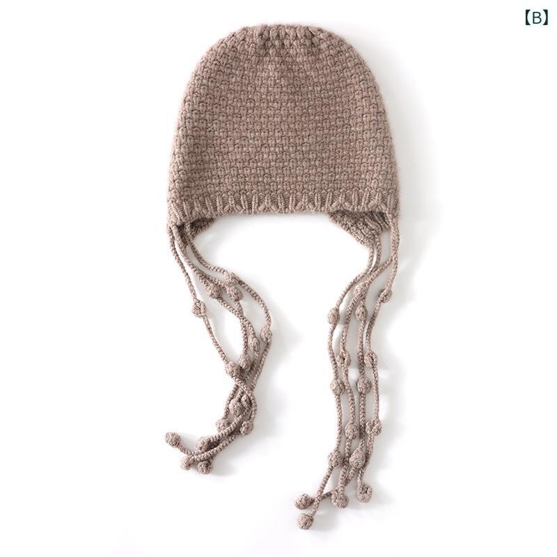 ニット帽 レディース カシミヤ 秋冬 保温 防風 通気性 厚手 ポンポン フリンジ スリット入り 耳当て ターバン風 ニットキャップ シンプル ファッション 通勤 豊富なカラー フリーサイズ