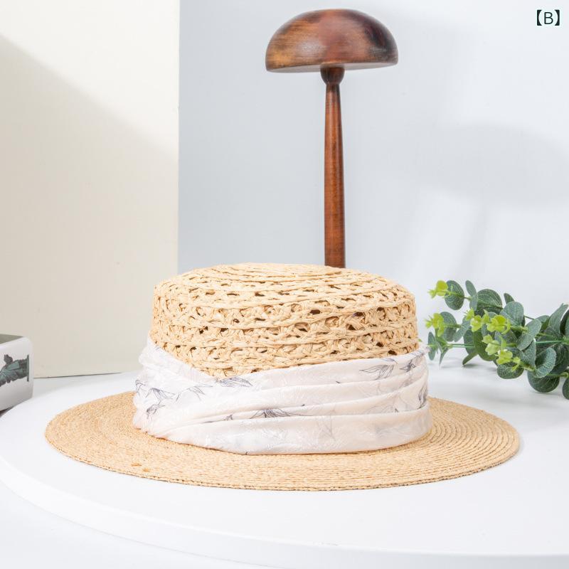 麦わら帽子 レディース UVカット 日焼け対策 日よけ 遮光 通気性 ラフィア素材 平つば つば広 サンハット 小顔効果 おしゃれ ファッション小物 春夏