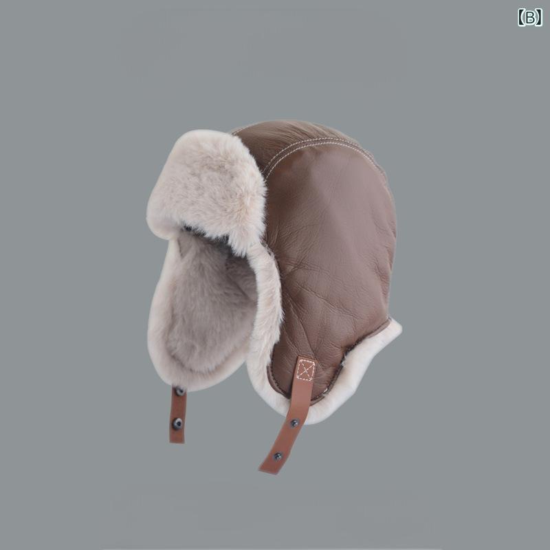 飛行帽 レディース メンズ ユニセックス 冬 厚手 保温 防寒 耳あて付き アウトドア サイクリング 電動自転車 防風 PUレザー ベル型 つばなし 個性派 トレンド