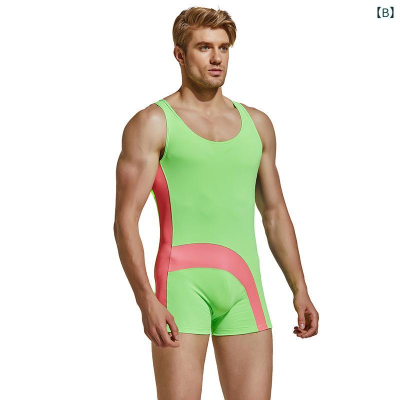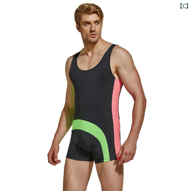 メンズ シングレット レスリング ワンピース 水着 ナイロン カラーマッチング ベスト 水泳 ボクサー ブリーフ