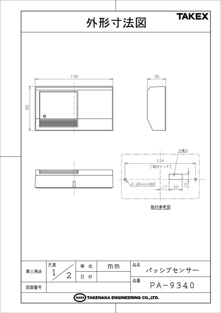 【PA-9340】 パッシブセンサー ロングエリア TAKEX 竹中エンジニアリング