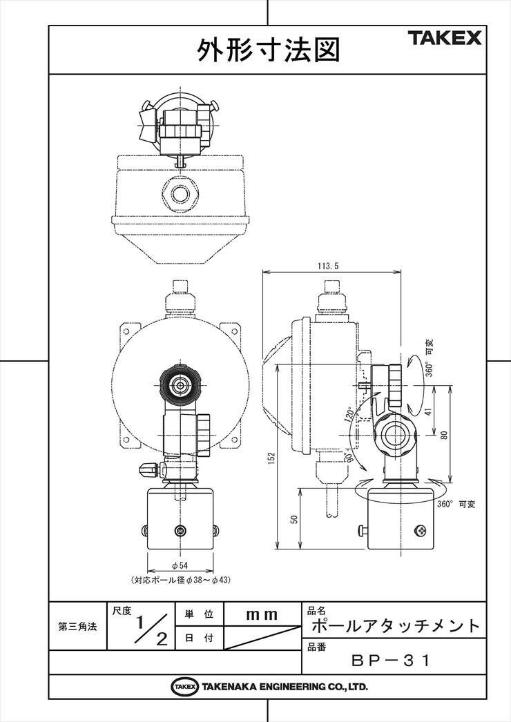 【BP-31】 【在庫限り】RX-10シリーズ用 ポールアタッチメント TAKEX 竹中エンジニアリング