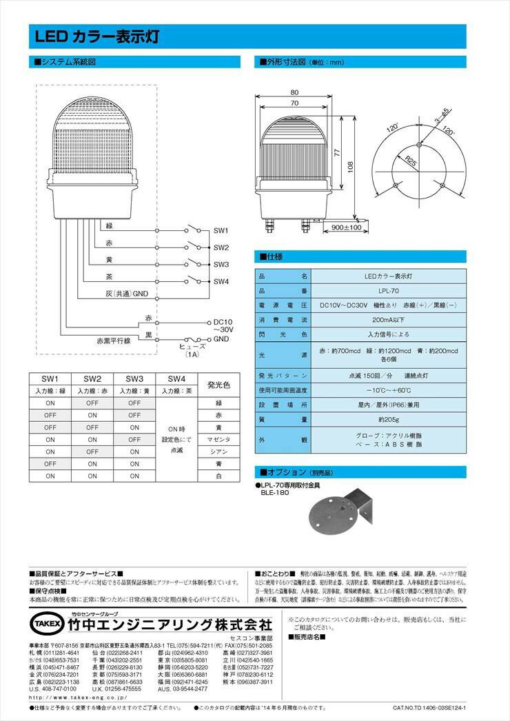 【LPL-70】 LEDカラー表示灯 TAKEX 竹中エンジニアリング