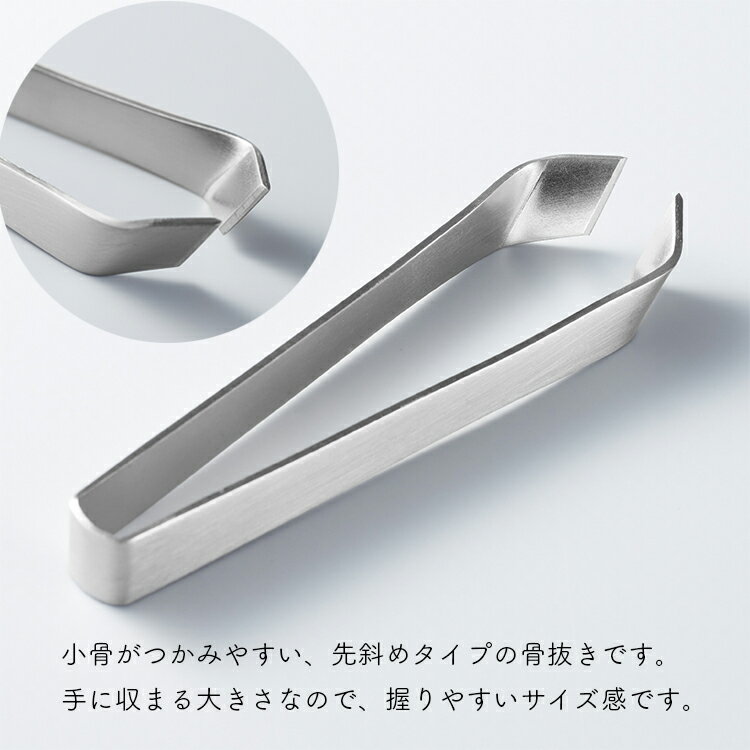 本体サイズ(約)約10.5×3.1×1.2cm本体重量(約)約35g素材・材質ステンレススチール原産国日本商品説明・魚の小骨をしっかりつかめる、先斜めタイプの骨抜きです。・指先で骨の位置を確かめながら、頭側に向かって斜めに引くように抜くだけで、スムーズに処理できます。・手にフィットするコンパクトなサイズで握りやすく、細かい作業も快適。・ステンレス製なのでサビにくく、清潔に使えます。食洗機対応でお手入れも簡単です。・毎日の魚料理の下ごしらえに頼れる、日本製のキッチンツールです。その他食洗機対応:可注意事項※リニューアルに伴い、パッケージ・内容等予告なく変更する場合がございます。予めご了承ください。※撮影環境、ご覧の端末のモニター設定によっては実物の色味と異なって見える場合がございます。予めご了承ください。※骨抜きの用途以外には使用しないでください。※先端部は鋭利になっています。刃先でケガをしないよう取り扱いには十分注意してください。※乳幼児の手の届かない安全な場所に保管してください。※初めて使用する時は食器用洗剤でよく洗ってください。※使用後は柔らかい布かスポンジに洗剤を付けてよく洗い、乾いた布で水分を拭き取ってから、乾燥したところに収納してください。※食器洗浄機や食器乾燥器に使用できます(家庭用)。商品区分当店では、ギフトラッピング(熨斗対応を含む)はお受けすることができませんので、あらかじめご了承ください。リニューアルに伴い、パッケージ・内容等予告なく変更する場合がございます。予めご了承ください。【関連キーワード】KAI 骨取り 魚の骨抜き 魚用ピンセット 魚骨抜き器 骨取りピンセット ステンレス ピンセット 魚 骨 下ごしらえ 魚料理 刺身 ステンレス製 食洗機OK 食洗機可 食洗機対応 お手入れ簡単 握りやすい 先斜めタイプ 三枚おろし さばく 骨抜きピンセット 調理 料理 調理器具 キッチンツール キッチン用品 キッチン道具 キッチン 台所 キッチングッズ 台所用品 新生活 つり