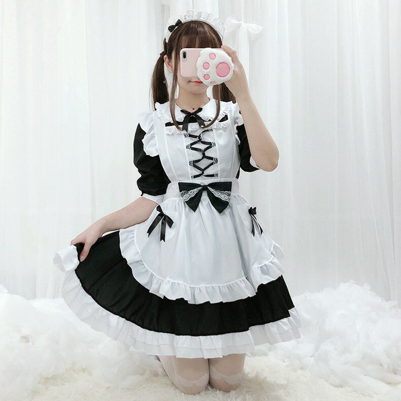 【商品説明】サイズ(単位:cm) フリーサイズ: バスト:80-88cm ウェスト:68-74cm 着丈:85cm 袖丈:35cm カラーブラック(写真※ご参考程度)素材ポリエステル、その他セット内容ワンピース+エプロン+カチューシャ+蝶リボン配送方法佐川急便(日時指定可・代金引換決済可)送料 ご注意事項◆ 商品写真はできる限り実物の色に近づけるよう加工しておりますが、お客様のお使いのモニター設定、お部屋の照明等により実際の商品と色味が異なる場合がございます。 ◆ 平置き計測となっておりますので、2・3cmの誤差が生じる場合がございます。 ◆ プリント生地の商品については、生地の裁断・縫製方法により写真と同様の柄が出ない場合がございます。◆ 色落ちの恐れがありますので、他のものと一緒に洗濯をしないで下さい。単品手洗いでお願いいたします。◆ 楽天から届く自動配信メールは【送料】や【割引】等が正しく計算されない場合があります。 後ほど当店からのメールにて改めて正しい合計金額をご連絡致します。 返品対応 返品・交換は原則としてお受けしておりません。 初期不良や弊社都合による著しい発送遅延などが発生した場合は、未使用の商品のみ到着日から7日以内にご連絡頂ければご返金・交換対応させて頂きます。 明細書・領収書※当店では紙資源保護の観点から、納品書・領収書は商品と同封しておりません。 ※必要な際は備考欄に記載をお願いします。・ ※(領収書の宛名など必要事項を合わせてご記入しご連絡ください)。 ※予めご了承くださいませ。 メーカー希望小売価格はメーカーカタログに基づいて掲載しています 不良品についての説明基づいて掲載しています