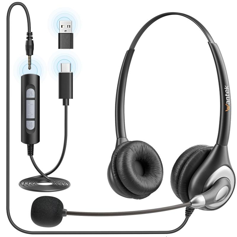 Wantekヘッドセット3.5mm TypeC USB ノイズキャンセリングマイク付きとオンライン有線制御PC用ヘッドホン Web会議、Skype、オフィス、在宅勤務、業務用、リモートワーク、コールセンターに適用