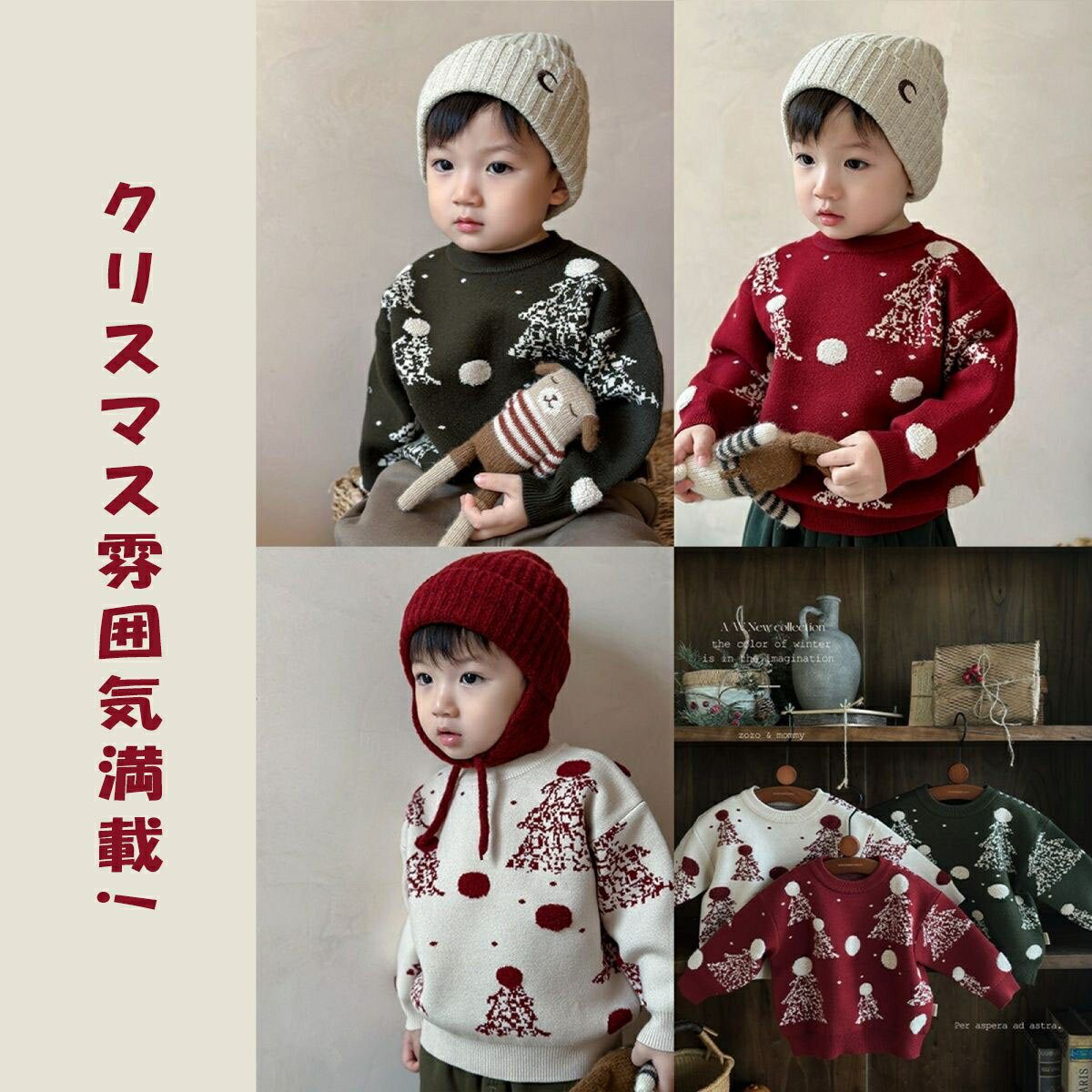 トッ 子供服 ベビー服 男の子 女の子 ニットセーター サンタ お揃い 兄弟姉妹 長袖 cm 110 100 90 80 73 キッズ ベビー セーター