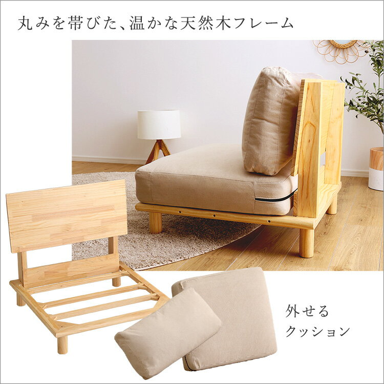 【25日限定★5%OFFクーポン】 ゆったり幅広 一人掛けソファー 天然木 フレーム クッション 肘無し 一人用 ローソファー ファブリック 脚付き ナチュラル シンプル おしゃれ 北欧 ポケットコイル かわいい