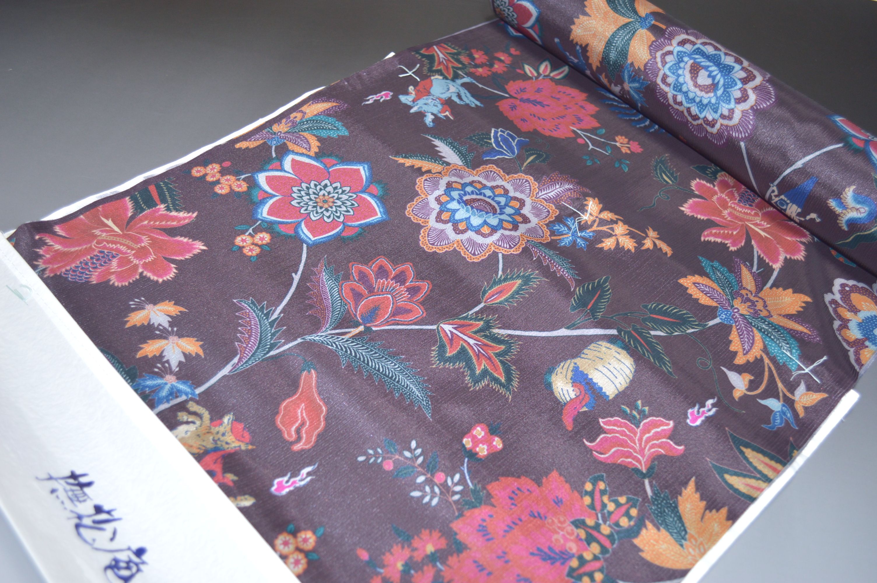 【送料無料】撫松庵友禅染め楊柳生地羽裏(長尺・女性用)No.5725 花と妖怪柄 焦げ茶色系統 日本製 コート素材 コート裏 長さ約5.5m巾37cm 道中着の裏地 二つ折りにして配送で送料無料 ポスト投函 【キモノ仙臺屋の和装小物特集】