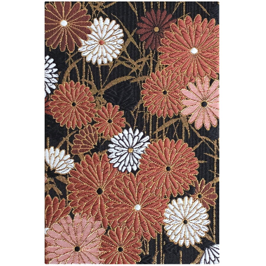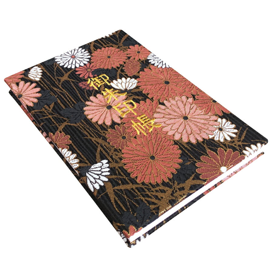 【千糸繍院 公式ショップ】千糸繍院 御朱印帳 黒紅笹菊 西陣織 金襴装丁/刺繍文字 蛇腹式48ページ 中判 大判 特大判