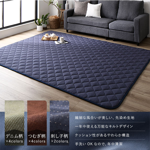 こたつ敷布団 キルト ラグ マット 約190×290cm 長方形 デニム生地 カーキ 洗える 綿100% 床暖房可 防滑 (メーカー名:福岡県 イケヒコ)