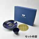 銀彩ブルーそば3点セット 箱入り | 年越しそば 麺皿 そば猪口 竹ス 青 ブルー シルバー 銀 シック オシャレ食器 お洒落 可愛い かわいい 陶器 和食器 食洗機可 レンジ可 業務用 日本製 国産 ギフト 食器セット 一人暮らし 新生活