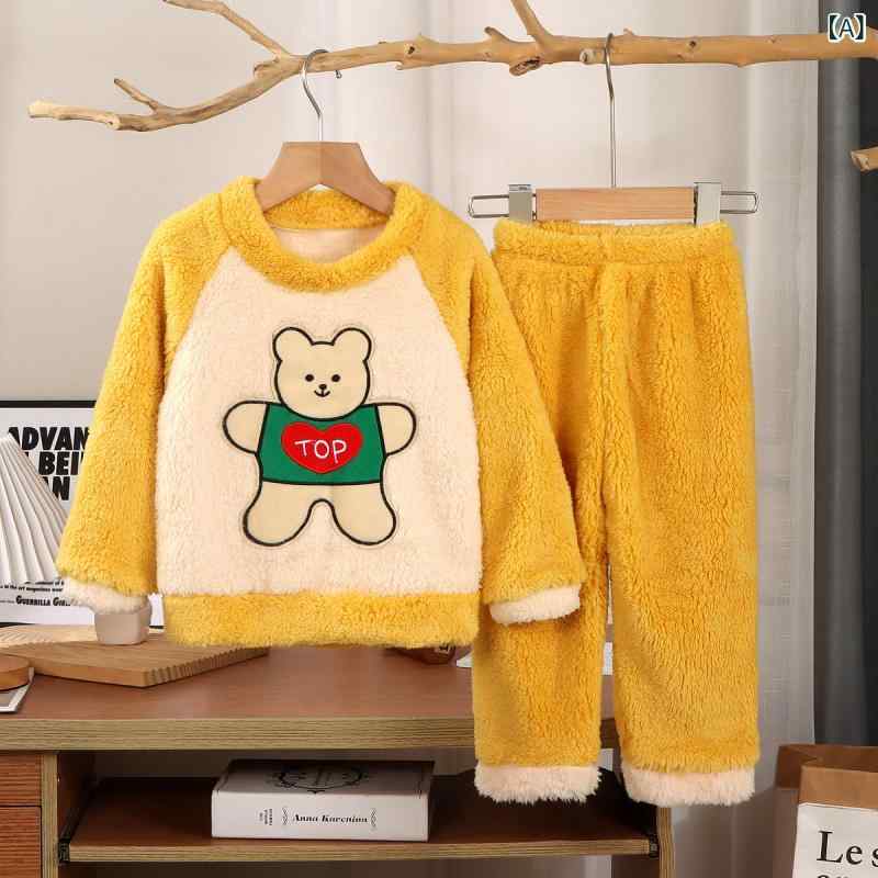 子供用パジャマ 秋冬 男の子 女の子 フランネル 厚手 暖かい 部屋着 ルームウェア セットアップ 寝間着 8歳以上 140cm以上 ポリエステル カートゥーン柄
