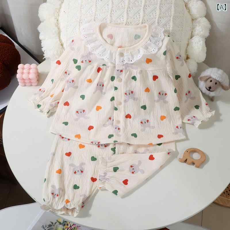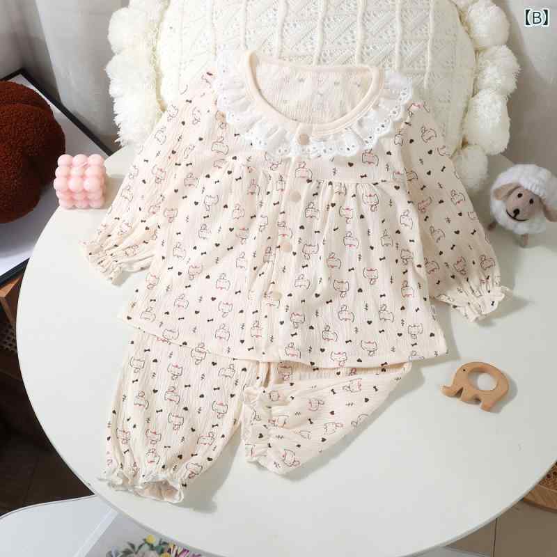 ・安全等級: A類・生地: ちりめんコットン・対象: 女の子・対象年齢: 3~8歳 (100~140cm)・スタイル: 韓国風・適合身長: 80cm, 90cm, 100cm, 110cm, 120cm, 130cm, 140cm, 150cm・主な生地成分: ポリエステル85%・厚さ: 厚手・柄: 動物、漫画、落書き、文字、花・機能: 保温、吸湿・生地加工: 柔らか加工・カテゴリ: 子供用ホームウェア・要素: セットアップ、ストライプ、漫画、可愛い、レース