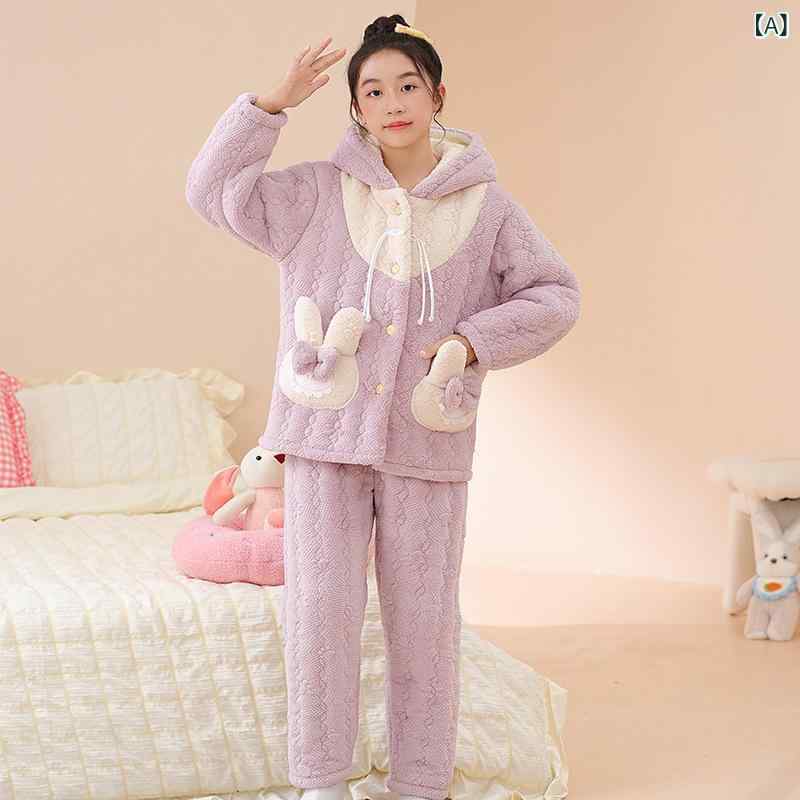 子供用パジャマ 上下セット フランネル 三層構造 厚手 冬 女の子 ホームウェア 部屋着 140cm以上 ポリエステル100% カートゥーン柄 保温性