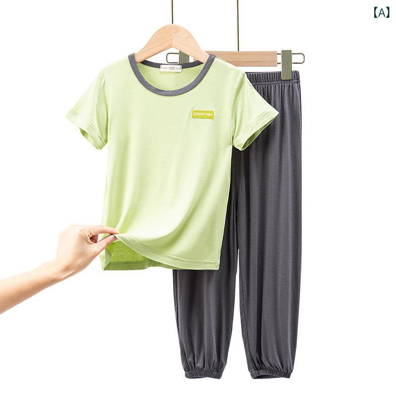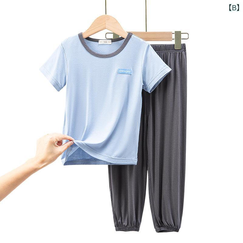 子供用パジャマ 上下セット 春夏 薄手 モダール 男の子 女の子 ルームウェア 部屋着 長袖 半袖 長ズボン